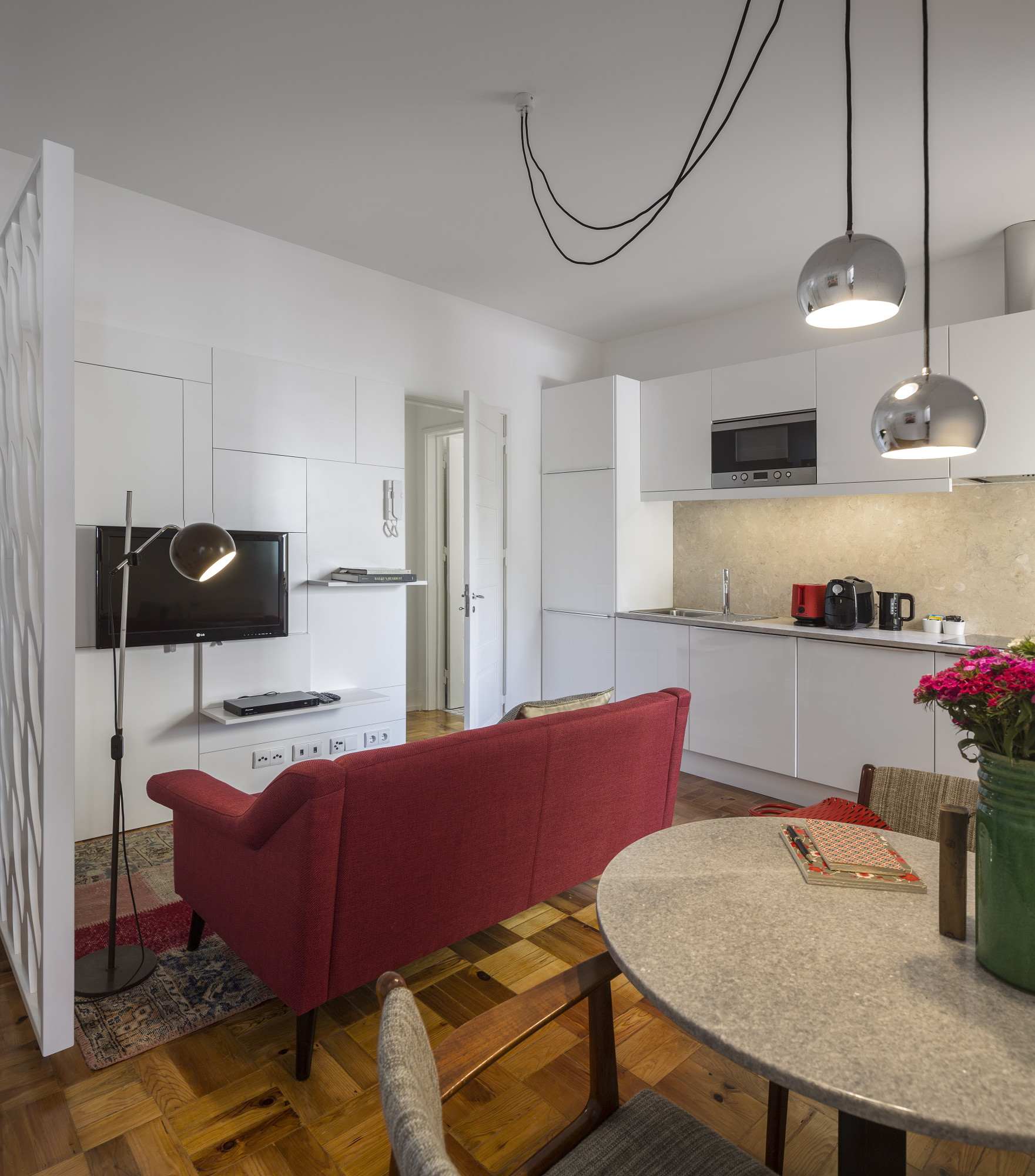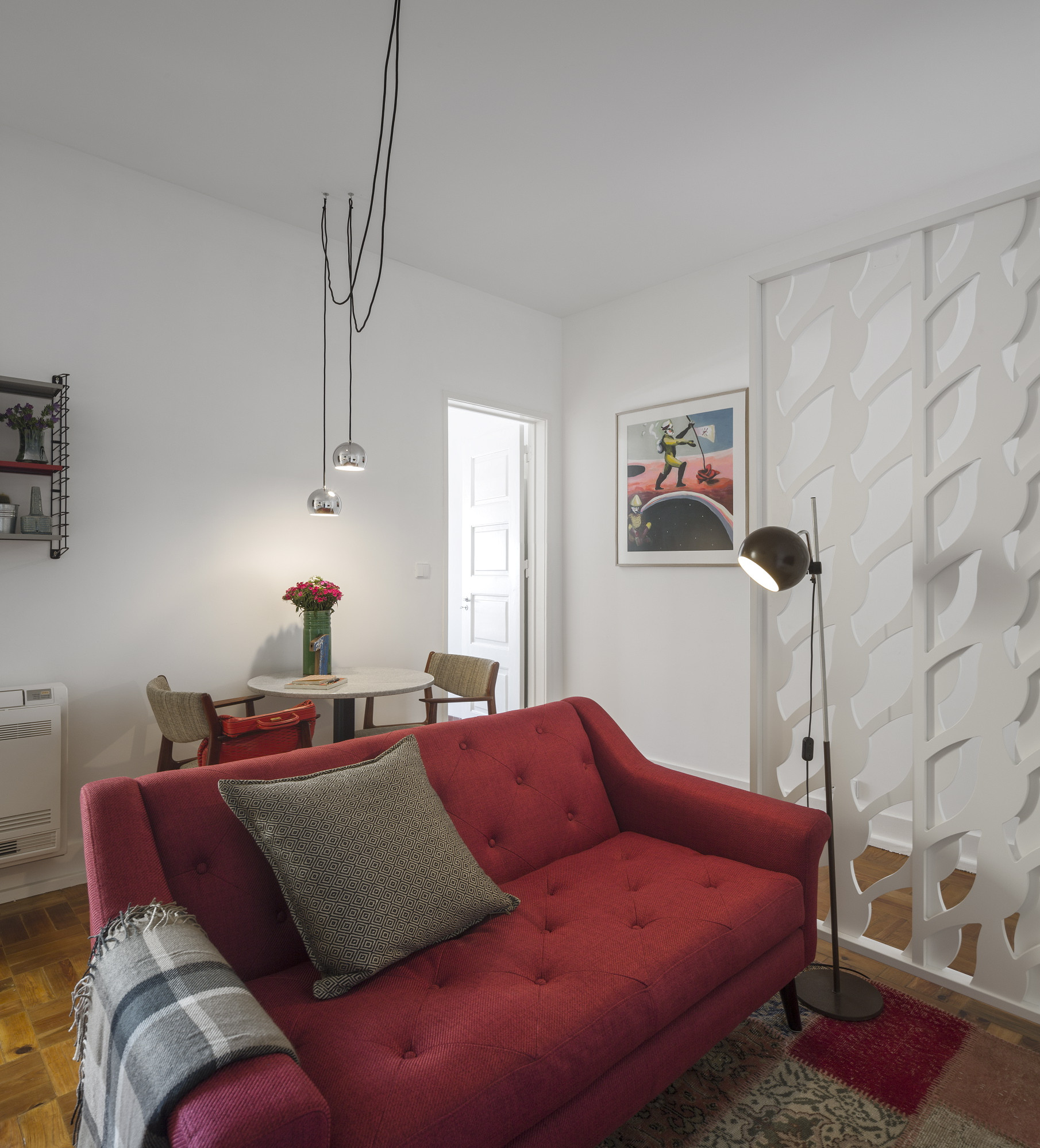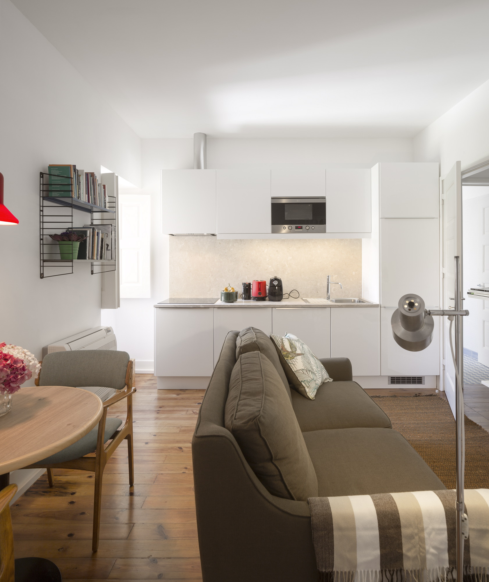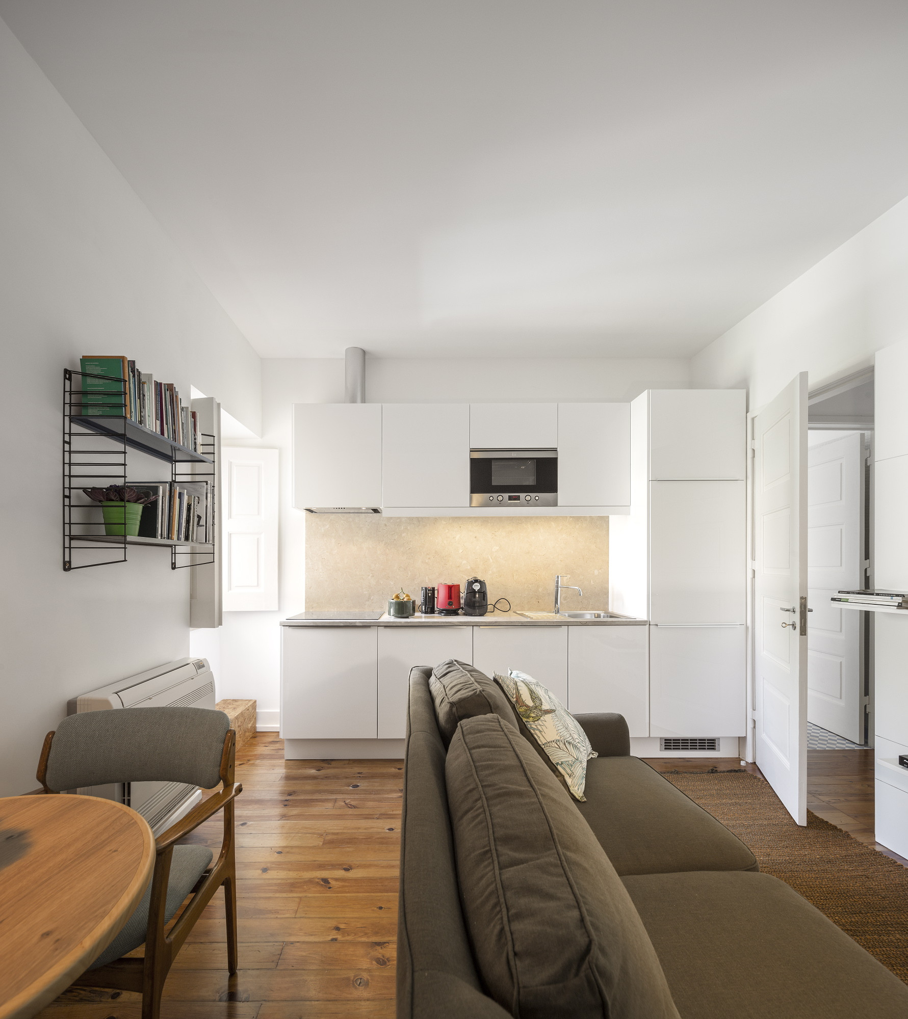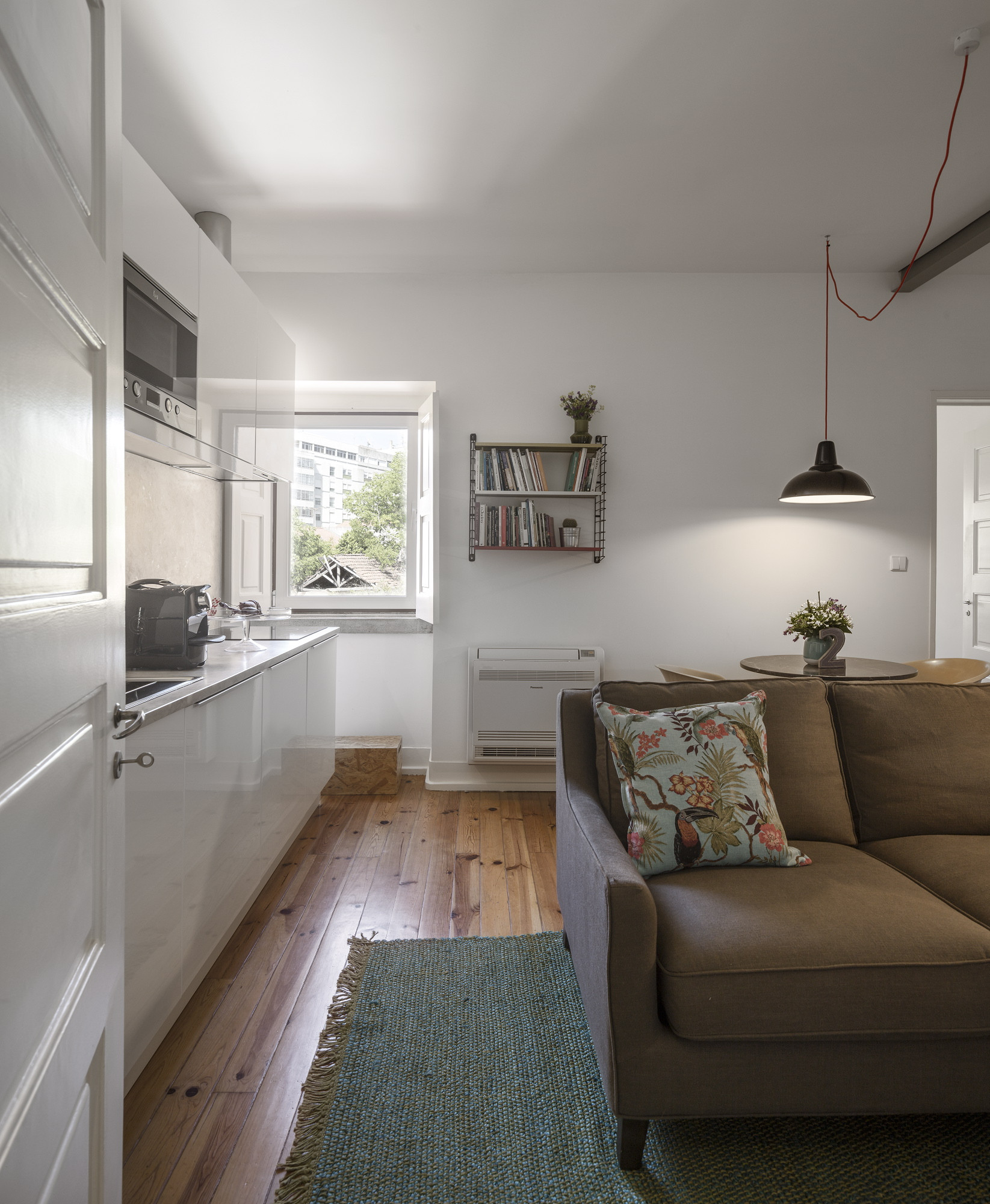 The architectural design, authored by Architect José Carlos Cruz, was set out to rehabilitate apartments from the end of the 1940's and restore them the dignity they once had. All units were treated in order to modernize equipments and infrastructures, adapting them to a new use and always respecting, whenever possible, the original materials. Complying with a sharp idea of comfort, all the apartments bear a unique signature. The colors, the coatings, the floorings, the contemporary vs. vintage pieces, the lightings, the small bookcases and also the works from the Flattered Art Collection all layered and overlapping each other to enrich the spaces with a “touch of warmth”.